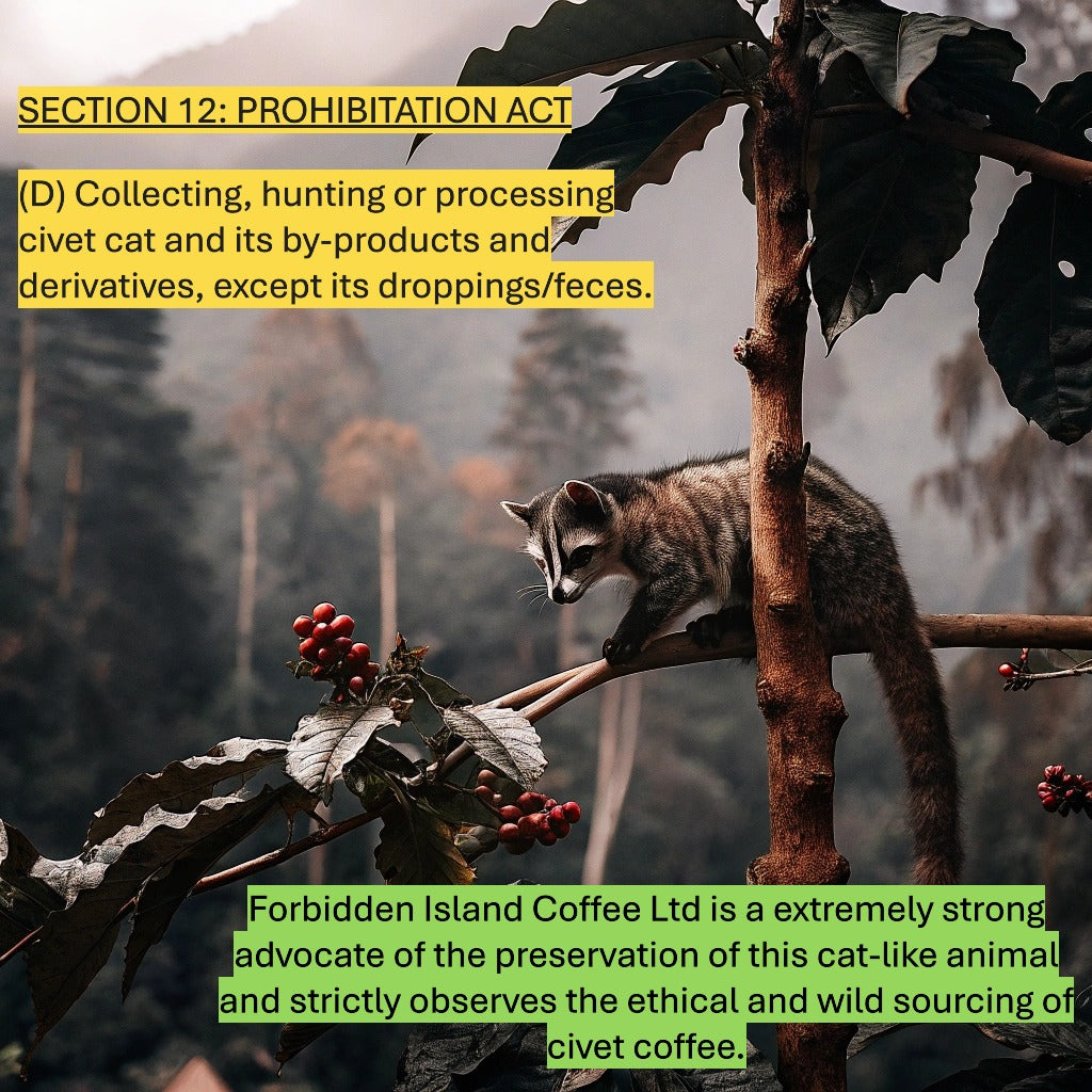 It is in the Philippines where you will find one of the world’s finest and most coveted produced coffee which have been eaten and passed through the digestive tract of the nocturnal, cat-like animal called palm civets. These cats supplement their diet with forest fruits, edible leaves and roots. Having an excellent palate, they are known to eat the sweetest, ripest and premium quality coffee berries. The civet removes the outer berry covering, then swallows them. Passing through the civet’s digestive system, they are naturally fermented and decaffeinated before being expelled as coffee parchments.